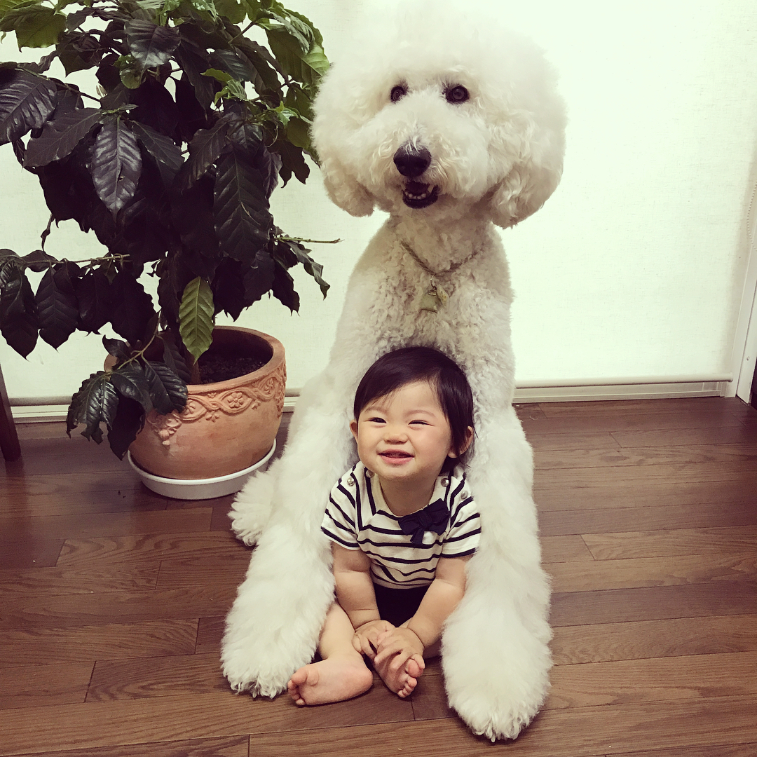 Mame, a one-year-old cute Japanese girl, Riku is a giant poodle, and together they make the cutest companions you’ve ever seen!