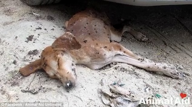 Animal Aid Unlimited then posted a video on their Facebook page charting the dog’s progress from him being discovered close to death to his current state.