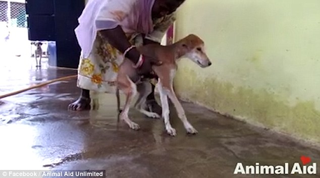 After two months of treatment and continual care by the staff at the Animal Aid Unlimited shelter, Oliver was soon back on his feet, running around and playing with his carers.