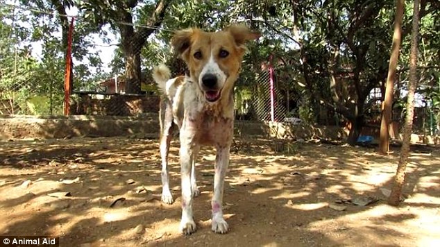 But she went on to make a full recovery and can now be seen bounding around Animal Aid Unlimited’s sanctuary, with just the scars and patches of fur missing a reminder of her traumatic ordeal.