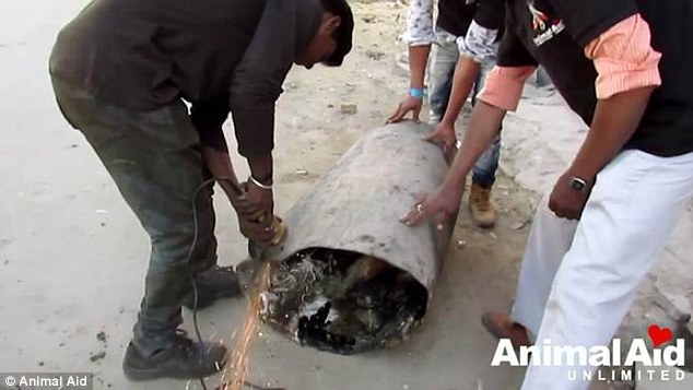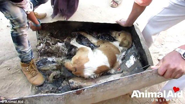 According to Animal Aid Unlimited, she may have gone inside the drum to get warm during the night, and that her own body heat had melted the tar which she then sank into and was unable to free herself from.