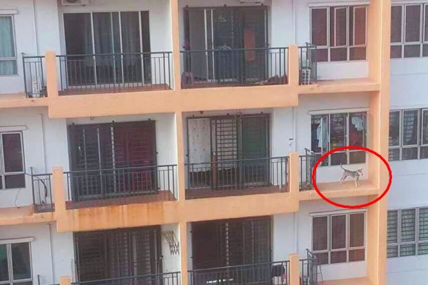 According to the Veterinary Services Department enforcement division officer, Masdin Ubin said, “The owner, his wife and their two children were actually in the process of moving house. While packing up, he put the dog out on the balcony, but didn’t notice that the dog had slipped through the metal railings and went onto the ledge several times.”