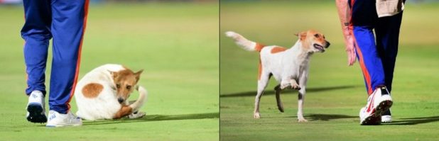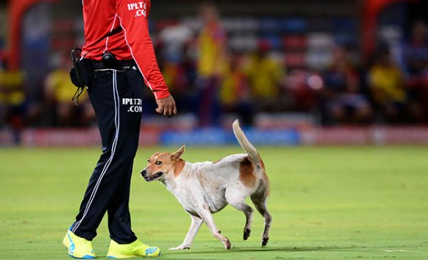 In a recent IPL match between Pune and Delhi at Visakhapatnam, a dog scurried on to the field and surprised the players. While the dog kept running free on the field, the spectators kept cheering the friendly dog.
