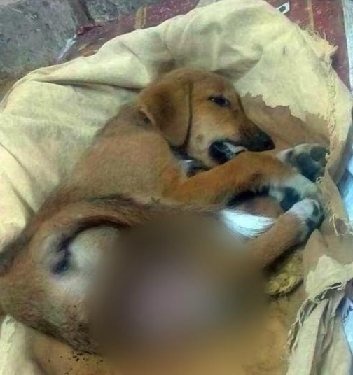 The pictures of pup went viral on social media. According to eyewitnesses, the puppy was hit so hard that its intestines popped out.